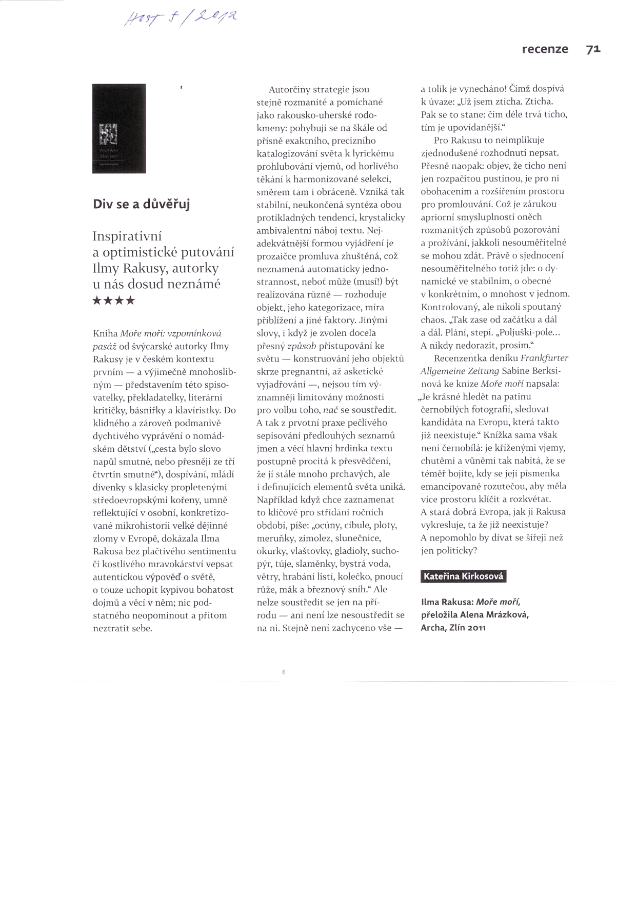 Inspirativní a optimistické putování Ilmy Rakusy, autorky u nás dosud neznámé